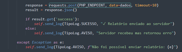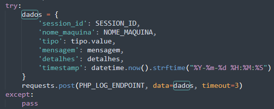 Esses dados são enviados continuamente via /api/log.php.