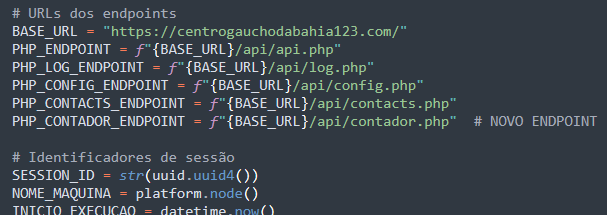 FunçãoEndpointWA-JS modificado/altor/wppconnect-wa.jsDownload do payload ZIP/altor/gera2.phpConfigurações dinâmicas/api/config.phpLog em tempo real/api/log.phpExfiltração de contatos/api/contacts.phpContador de sucesso/erro/api/contador.phpRelatório final/api/api.php